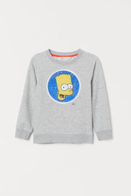 Sweatshirt garçon Bart Simpson – Sequins réversibles gris