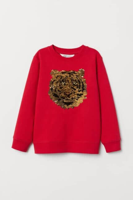 Sweatshirt garçon tigre – Sequins réversibles rouge