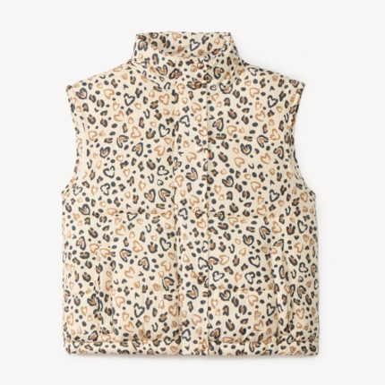 Doudoune sans manches fille imprimé léopard cœurs – Orchestra