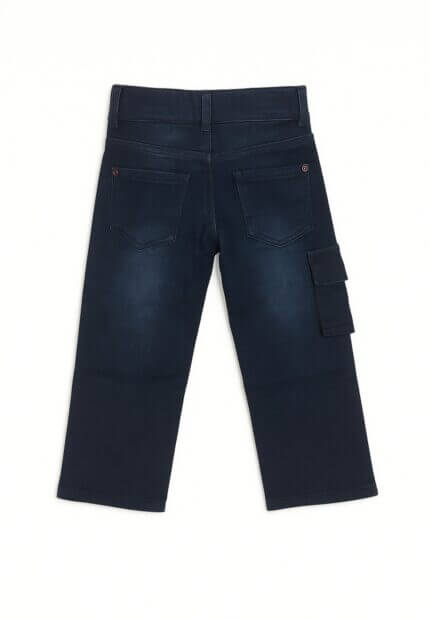 Pantalon jean fille évasé – Bleu foncé et bleu clair