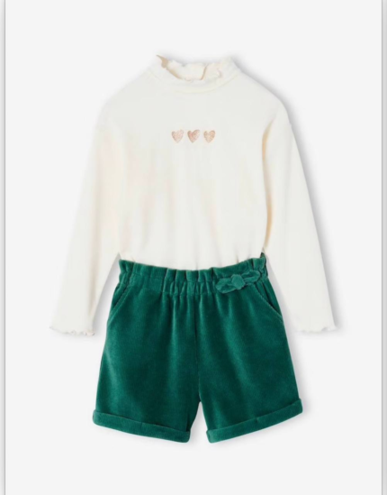 Ensemble fille élégant haut blanc et short vert