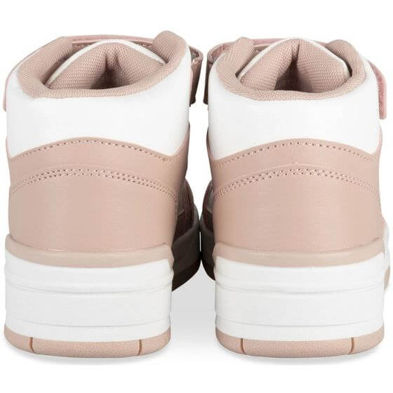 Baskets montantes fille en rose et blanc. Confortables, résistantes et stylées, parfaites pour l’école et les loisirs.