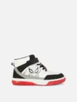 Baskets montantes pour garçon au design moderne bleu et blanc, dotées d’une fermeture à scratch et de lacets pour un maintien optimal. Confortables et résistantes, elles sont idéales pour l’école et les sorties quotidiennes.