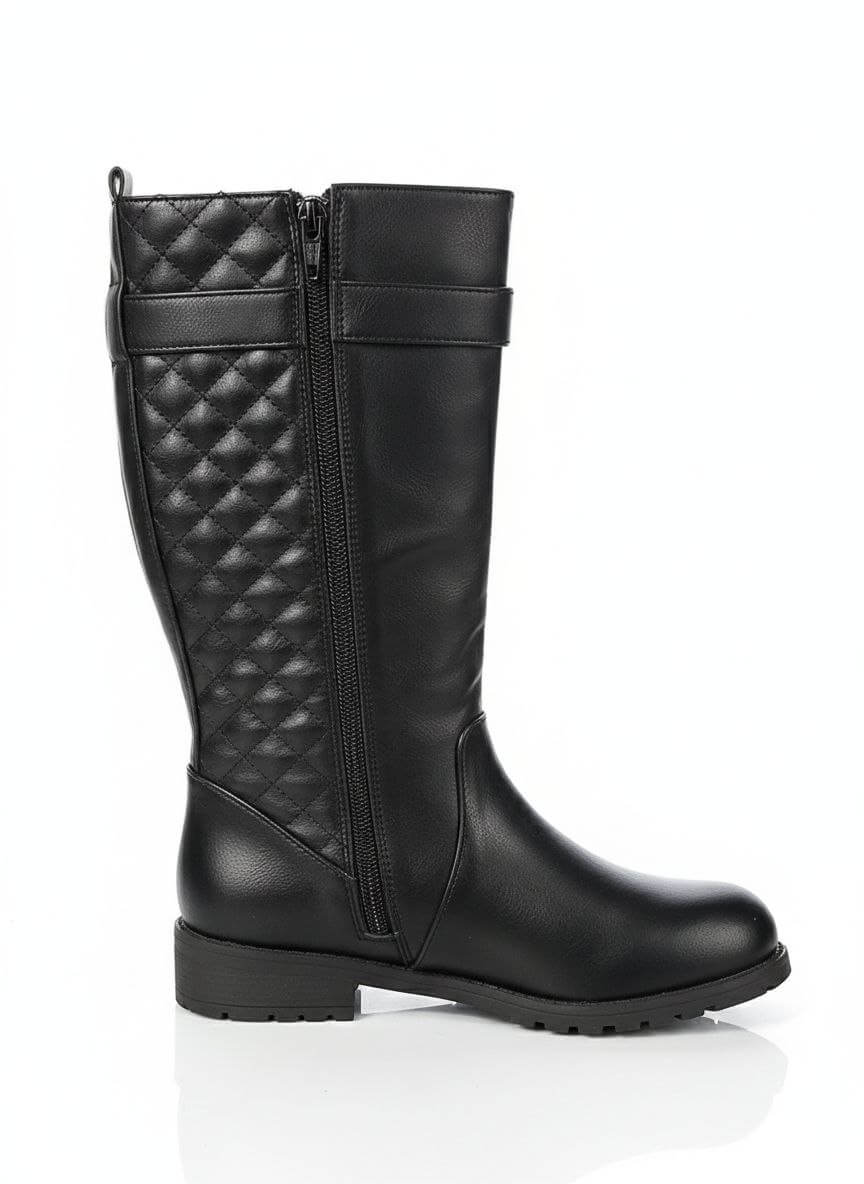 Bottes élégantes pour filles en simili cuir noir, dotées d’un panneau matelassé chic et d’une boucle décorative pour une touche raffinée. Fermeture latérale pour un enfilage facile et semelle antidérapante pour un confort optimal au quotidien. Un modèle stylé et pratique pour l’hiver.