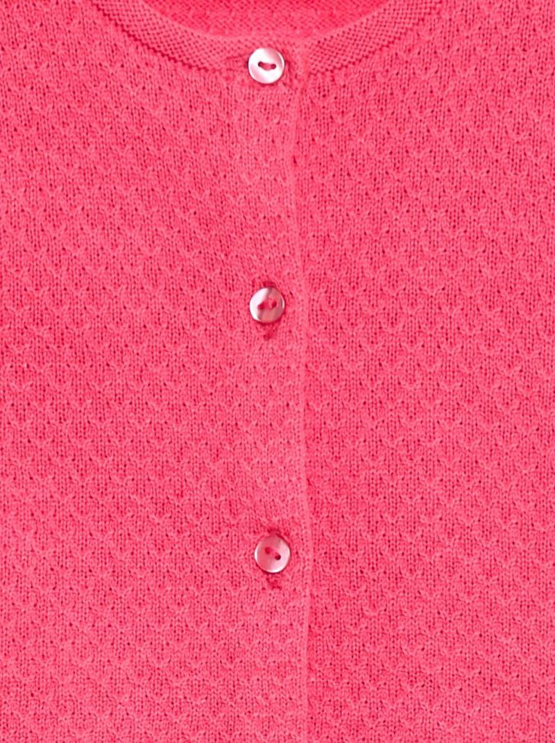 Cardigan doux et confortable pour bébé fille de Kiabi, avec fermeture boutonnée et maille légère, idéal pour garder bébé au chaud tout en douceur. Convient aux bébés de 1 mois à 3 ans.