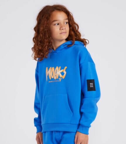 Sweat à capuche garçon MOOKS bleu logo jaune