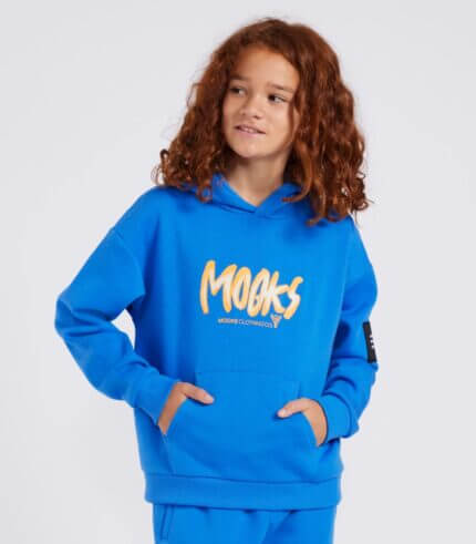 Sweat à capuche garçon MOOKS bleu logo jaune