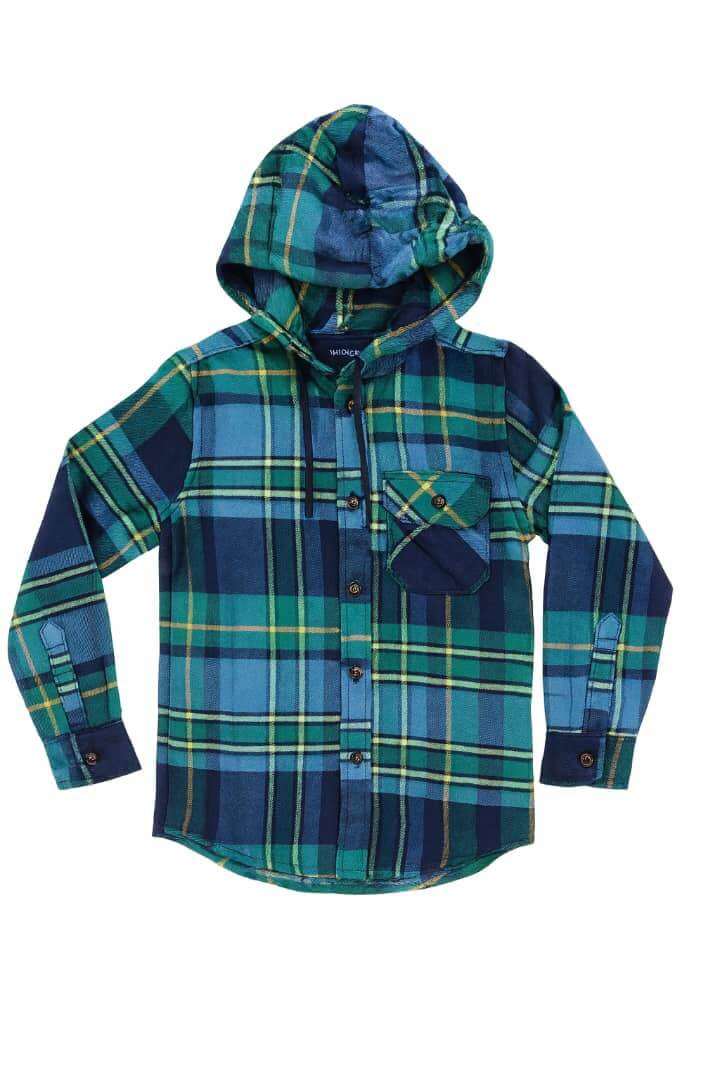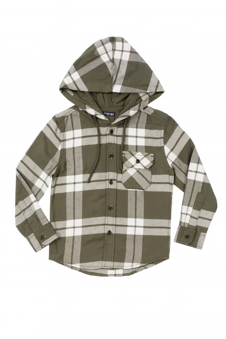Chemise garçon à capuche en coton doux avec motif à carreaux. Confortable et tendance, disponible de 2 à 12 ans.