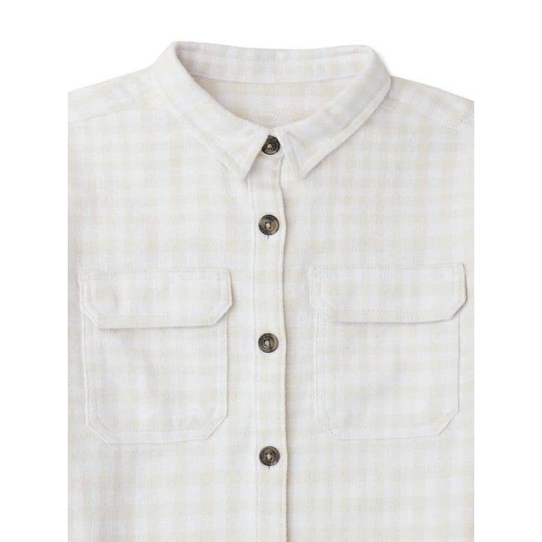 Cette chemise garçon à carreaux est disponible en deux coloris tendance : beige clair et beige à carreaux marron. Elle s’adapte ainsi facilement à toutes les occasions, qu’il s’agisse d’une sortie en famille, d’un anniversaire ou d’une journée à l’école.