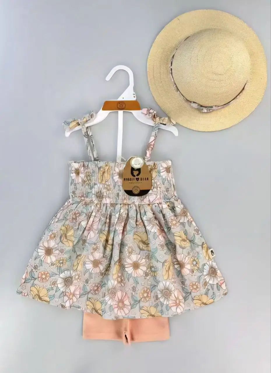 Ensemble d’Été 3 Pièces pour Fille : Robe, Short et Chapeau (1 à 2ans)