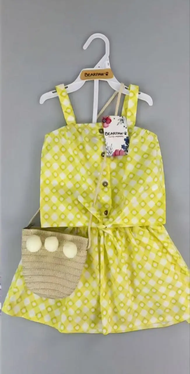 Conçu pour les petites filles de 1 à 4 ans, ce modèle est disponible en deux coloris printaniers : un violet doux orné de motifs et un jaune éclatant . Fabriqué dans un tissu doux et respirant, il assure une liberté de mouvement totale pour toutes les aventures estivales. Une tenue complète et irrésistible qui allie charme et praticité.