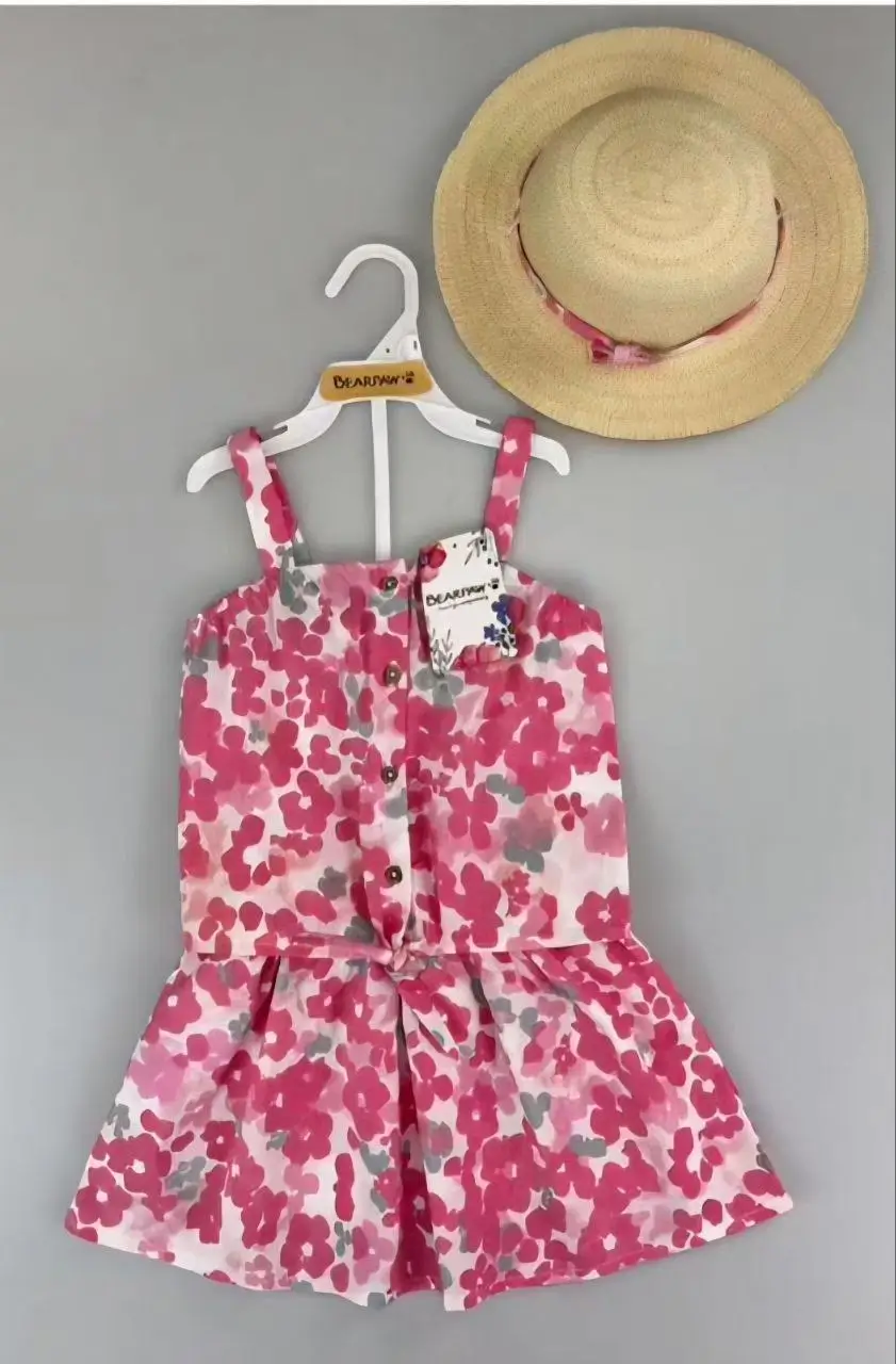 Ensemble d’Été 3 Pièces pour Fille : Robe, Short et Chapeau (1 à 4 ans)