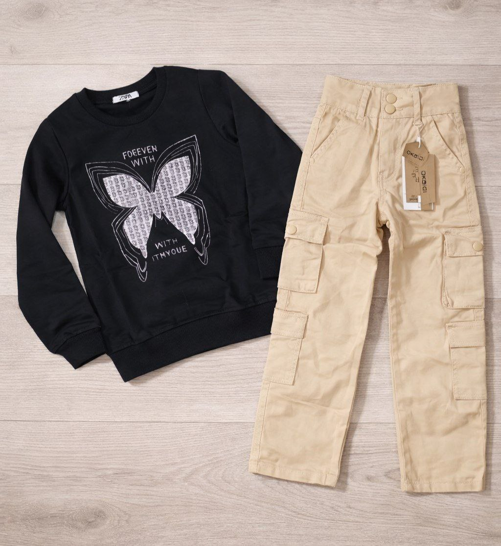 Ensemble fille sweat papillon & pantalon cargo – 2 modèles