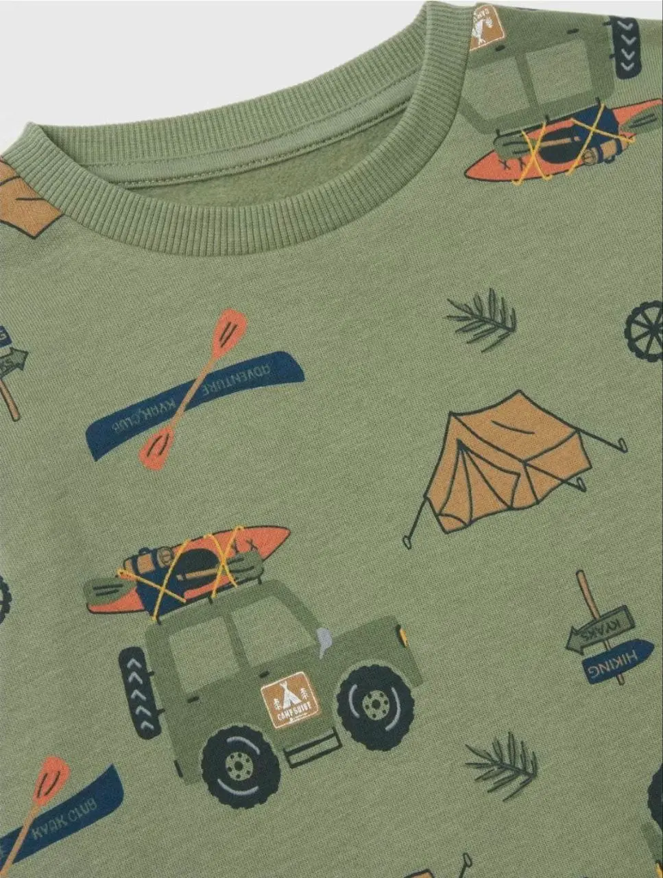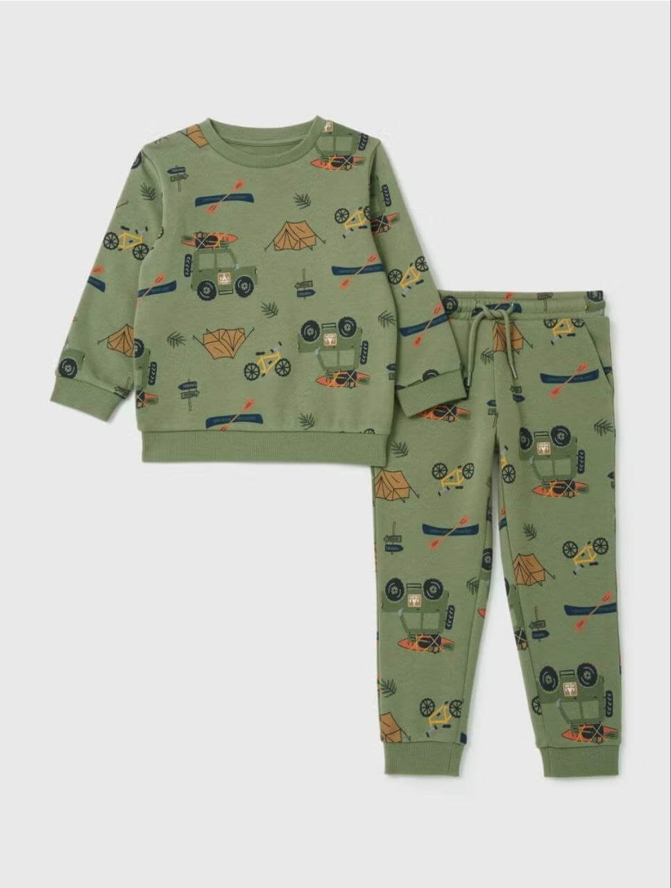 Ensemble garçon de la marque Matalan, composé d’un sweat à manches longues et d’un pantalon assorti. Confectionné dans une matière douce et confortable, avec imprimés ludiques sur le thème de l’aventure (camping et véhicules). Taille élastique avec cordon de serrage pour un maintien optimal et une grande liberté de mouvement. Idéal pour le quotidien et les journées fraîches.