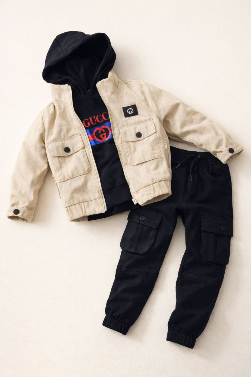 Ensemble garçon 3 pièces – Veste, hoodie et pantalon cargo