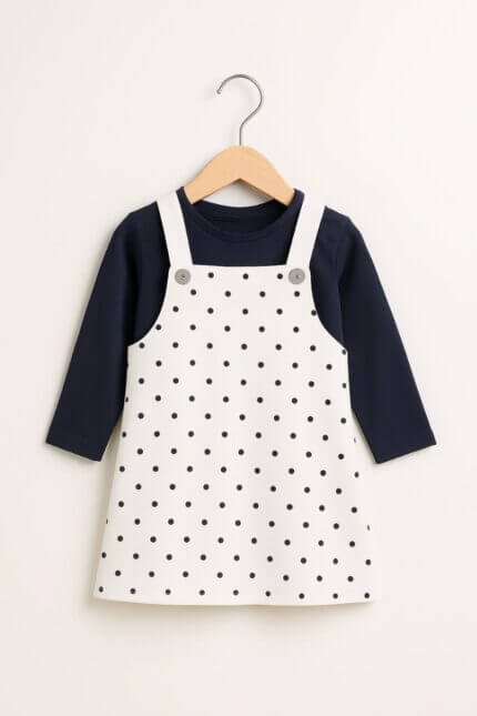 Ensemble robe salopette à pois et t-shirt manches longues fille