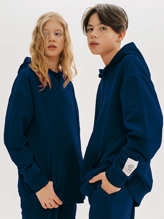 Avec son coloris bleu marine intemporel, cet ensemble s’associe facilement à une paire de baskets ou à des chaussures décontractées. La capuche pratique, les poches fonctionnelles et les finitions minimalistes en font une tenue à la fois simple et tendance. Cet ensemble convient aussi bien pour l’école que pour les moments de détente à la maison ou les activités sportives.