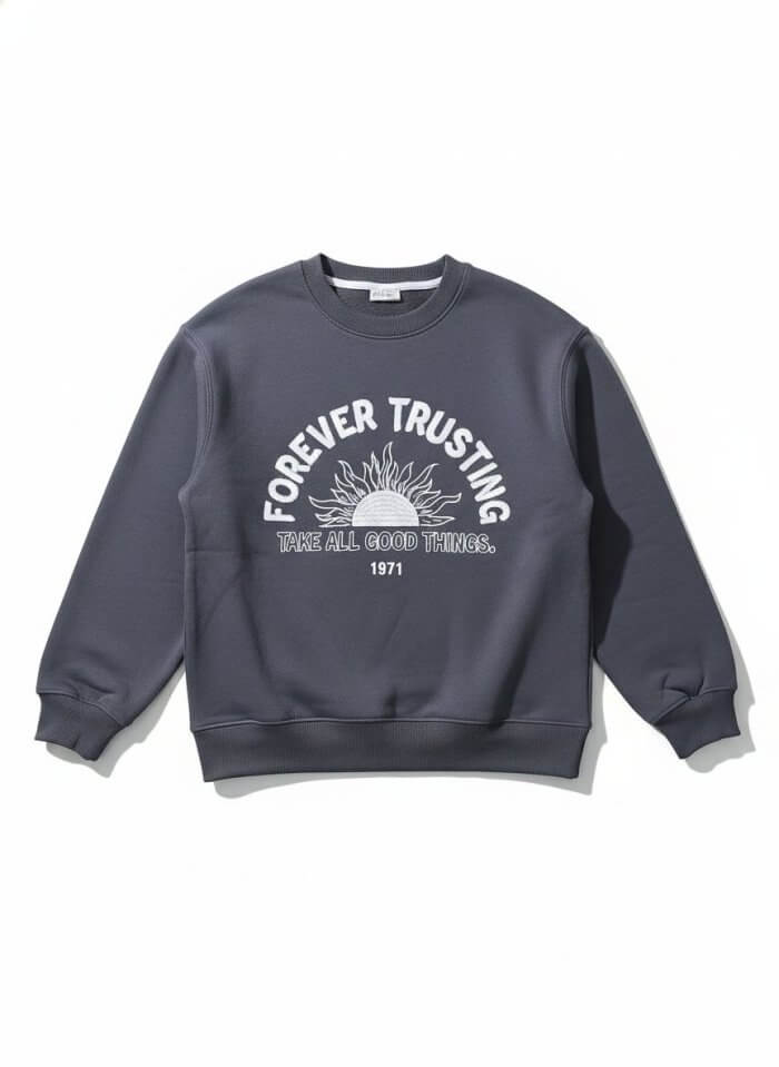 Sweat confortable pour fille avec motifs tendance, disponible en trois couleurs : vert, gris foncé et beige. Idéal pour un look moderne et cosy au quotidien. Convient aux filles de 10 à 16 ans.