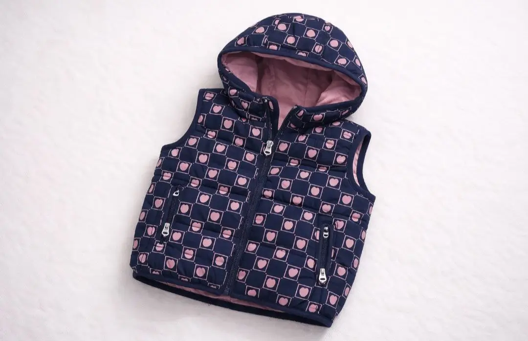 Gilet matelassé pour fille, doux et confortable, avec capuche doublée rose et imprimé cœur élégant. Léger mais chaud, il est parfait pour la mi-saison et les journées fraîches. Facile à porter au quotidien, il apporte une touche tendance et mignonne aux tenues des petites filles.