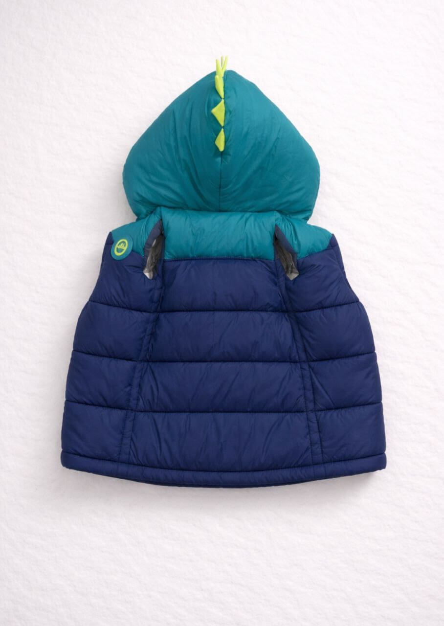 Gilet matelassé à capuche garçon bleu et vert motif dinosaure