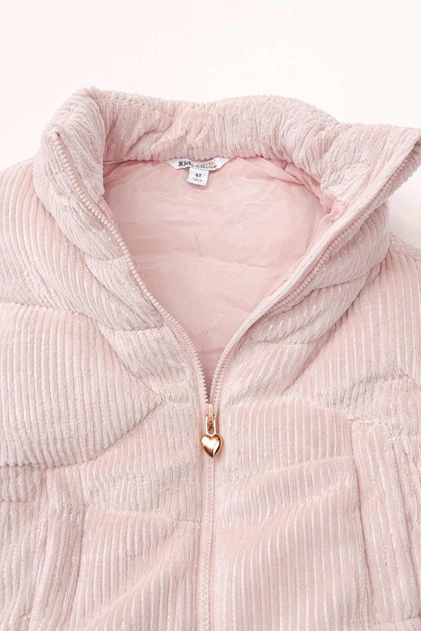 Gilet matelassé sans manches au toucher doux et côtelé, avec fermeture zippée et col montant. Léger, chaud et confortable, idéal pour la mi-saison. Convient aux filles de 2 à 4 ans.