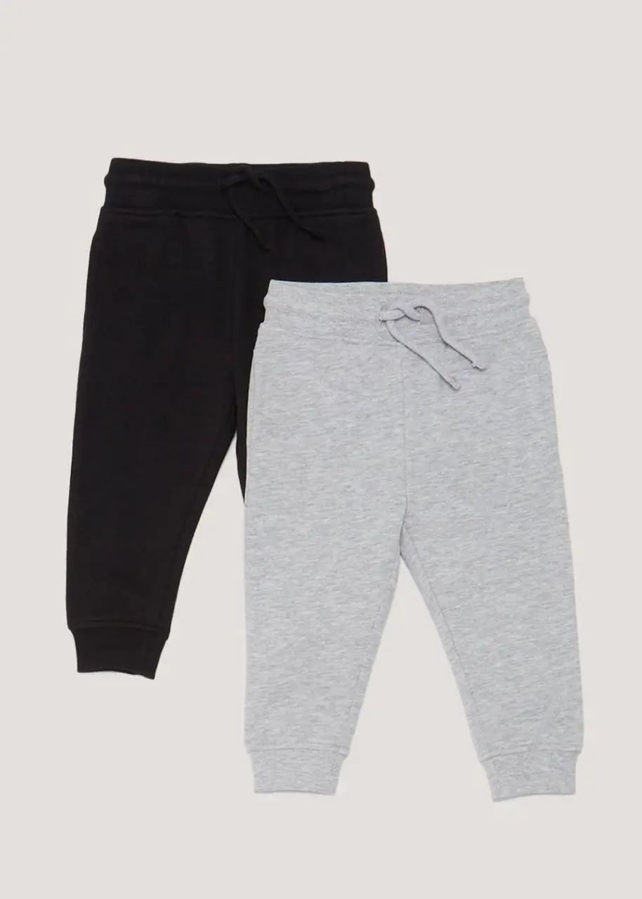 Pack de deux pantalons de jogging de la marque Matalan, comprenant un modèle noir et un modèle gris. Confortables et doux, avec taille élastique et cordon de serrage, idéals pour le quotidien, la maison ou les sorties décontractées.