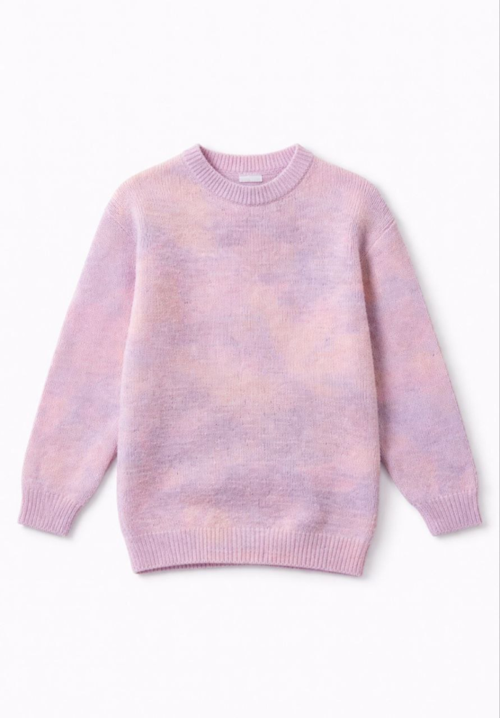 Pull fille en maille douce avec effet dégradé dans des tons roses et lilas. Coupe confortable avec col rond et finitions côtelées, idéal pour un look tendance et chaleureux au quotidien. Disponible de 6 à 14 ans.