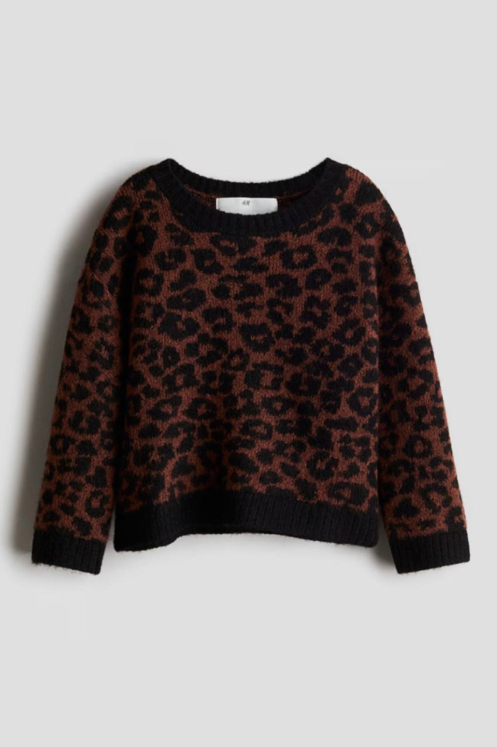 Pull pour fille de la marque H&M, en maille douce avec motif léopard tendance et coupe confortable idéale pour la saison fraîche. Facile à porter au quotidien, il offre chaleur et style moderne.