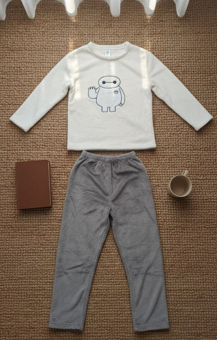 Pyjama femme en tissu doux et chaud, avec motif cartoon adorable. Disponible en 2 couleurs : bleu marine & blanc cassé.