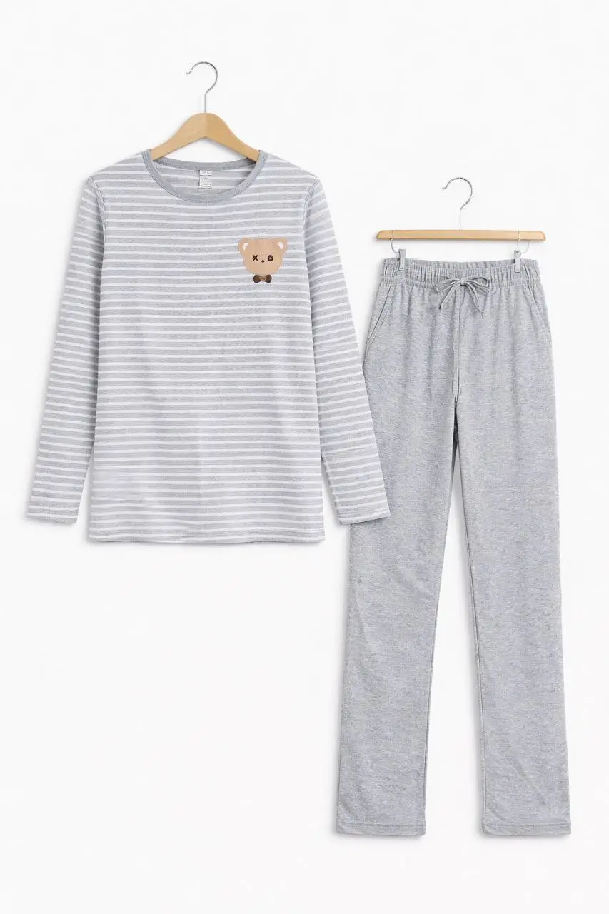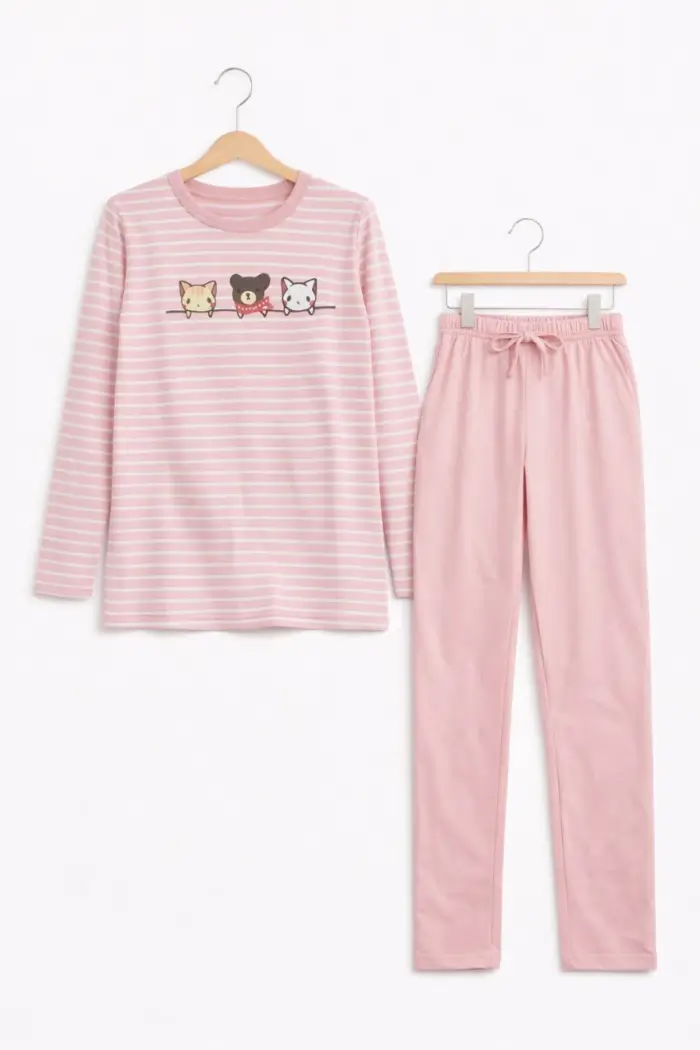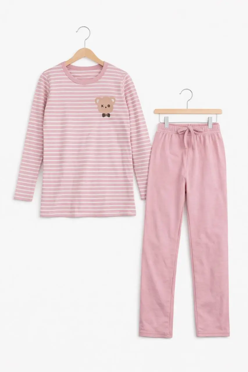 Pyjama fille composé d’un haut à manches longues et d’un pantalon assorti, conçu pour offrir confort et douceur pendant la nuit. Coupe agréable et matière douce, idéale pour le repos et les soirées à la maison. Modèles simples et imprimés selon les coloris, faciles à porter au quotidien. Disponible en plusieurs couleurs, pour les filles de 12 à 15 ans.