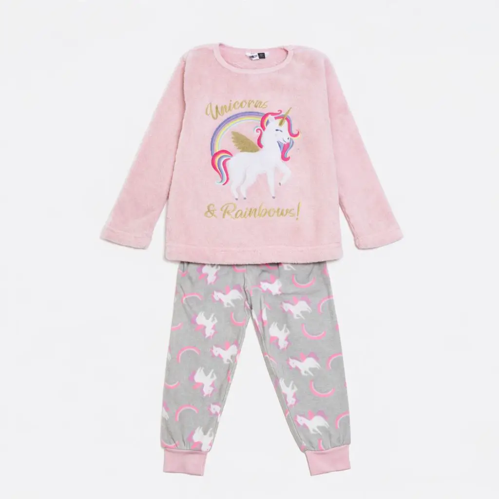 Pyjama chaud fille “Unicorn & Rembo” – Rose & Gris – Pepco