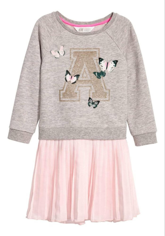 Robe sweat fille H&M grise – Papillons & jupe rose