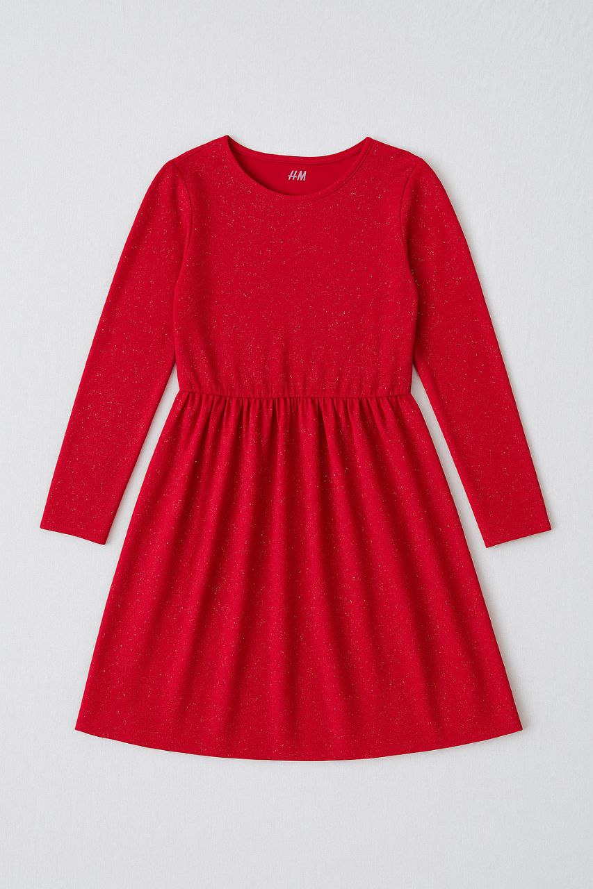 Robe fille H&M rouge à manches longues. Confortable, élégante et polyvalente, parfaite pour l’école ou les occasions spéciales.