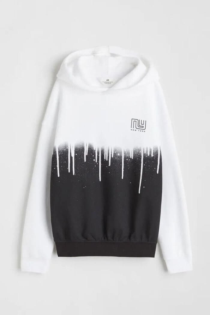 Sweat tendance en dégradé noir et blanc avec motif effet peinture. Confortable et idéal pour un look urbain moderne. Convient aux garçons de 10 à 14 ans.