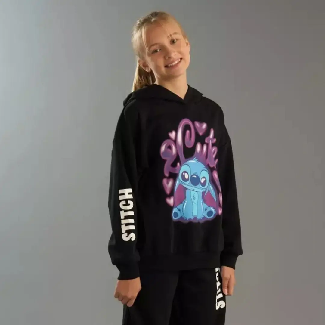 Hoodie fille noir tendance avec imprimé Stitch adorable et motif « Cute ». Conçu pour les enfants et adolescentes de 8 à 16 ans, ce sweat à capuche offre confort et douceur grâce à son tissu agréable à porter. Idéal pour un style décontracté au quotidien, à l’école ou pendant les sorties.