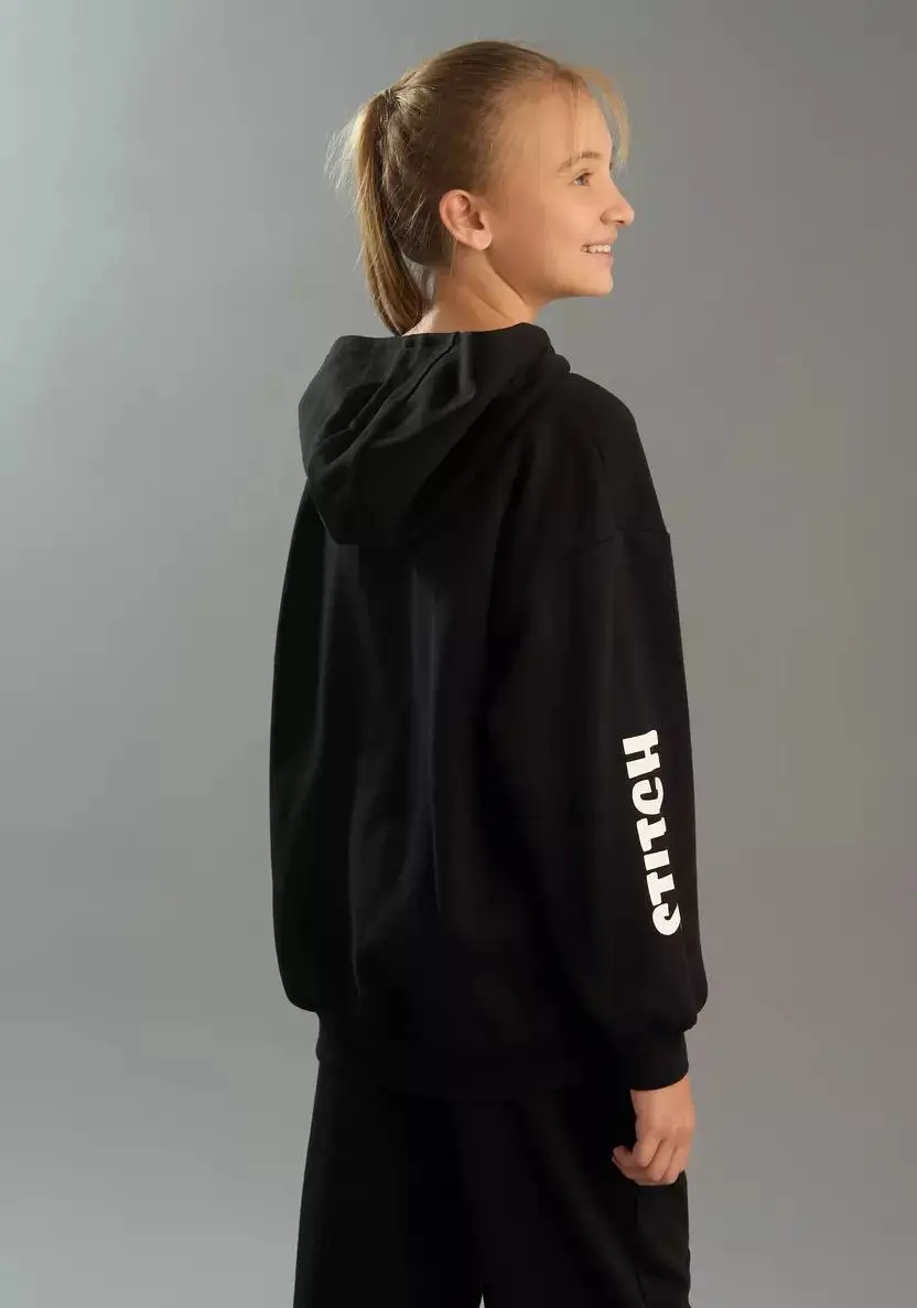 Sweat à Capuche pour Fille — Stitch Noir