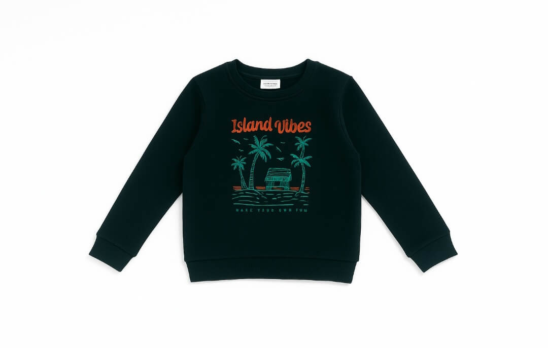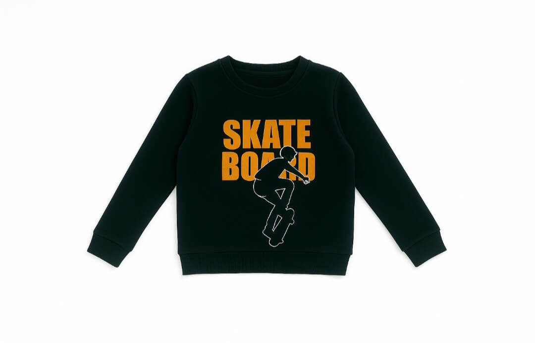 Sweat garçon bleu nuit à imprimés tendance. Confortable, chaud et stylé, parfait pour l’école et les sorties. Tailles disponibles : 6 à 12 ans.