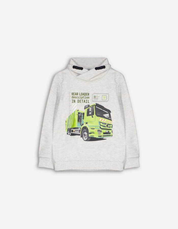 Sweat garçon camion gris avec col croisé – style confortable