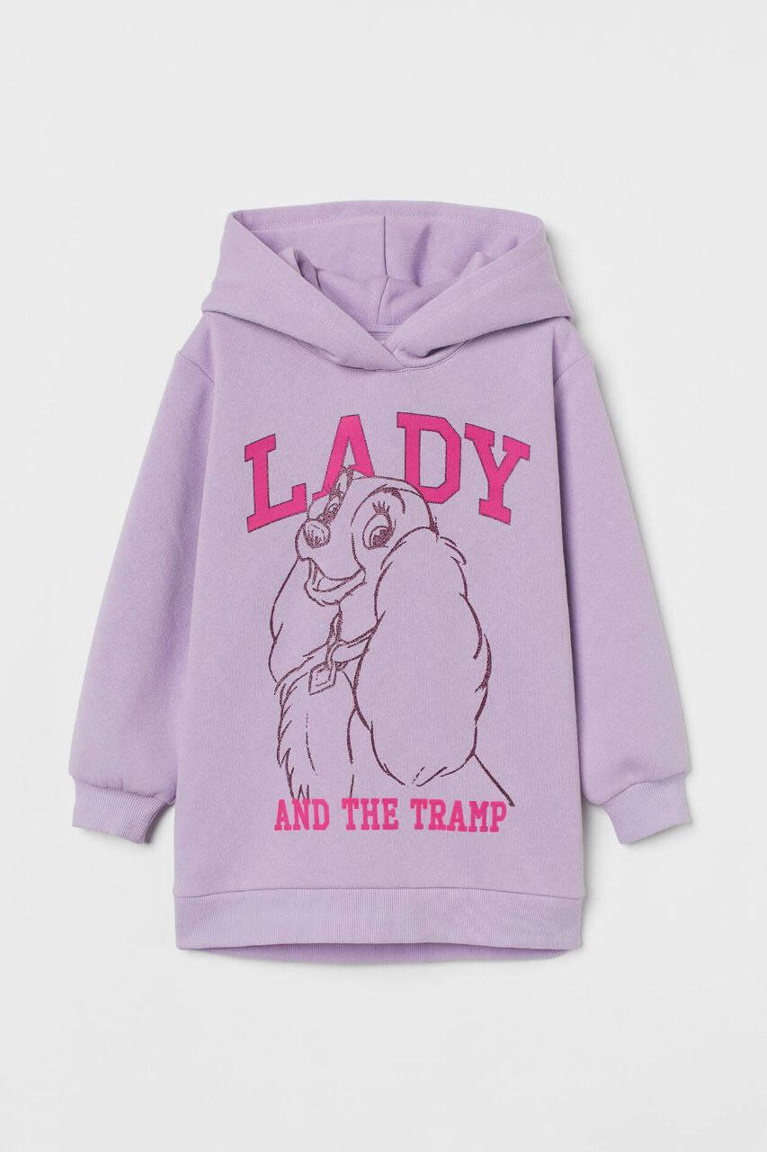 Sweat fille H&M couleur violet avec capuche et imprimΓ© Lady and the Tramp. Doux, confortable et parfait pour un look Disney tendance ππΎ