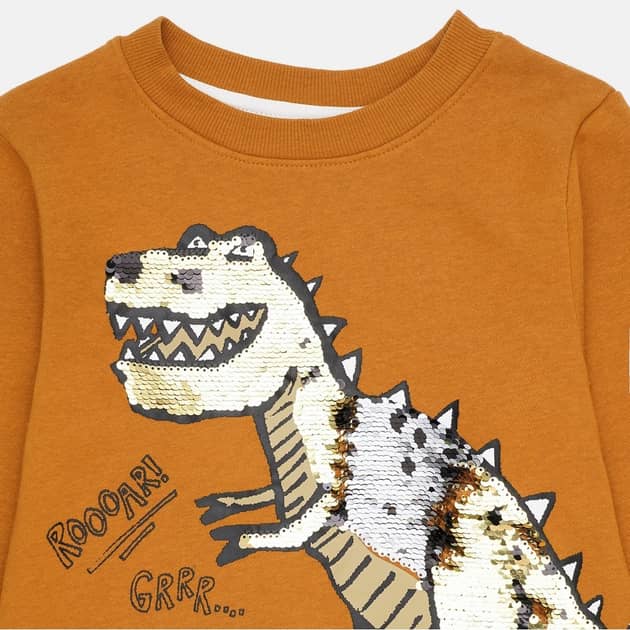 Sweatshirt garçon T-Rex – Sequins réversibles orange