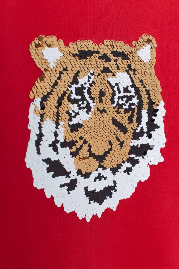 Sweatshirt garçon tigre – Sequins réversibles rouge