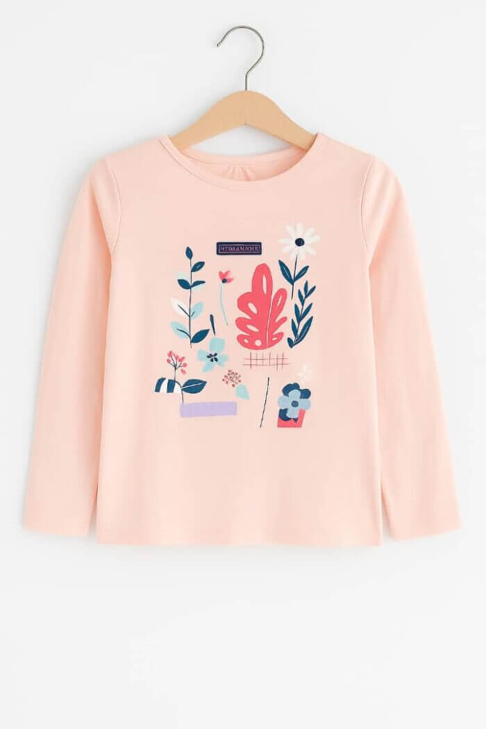 T-shirt fille manches longues rose pâle avec imprimé floral