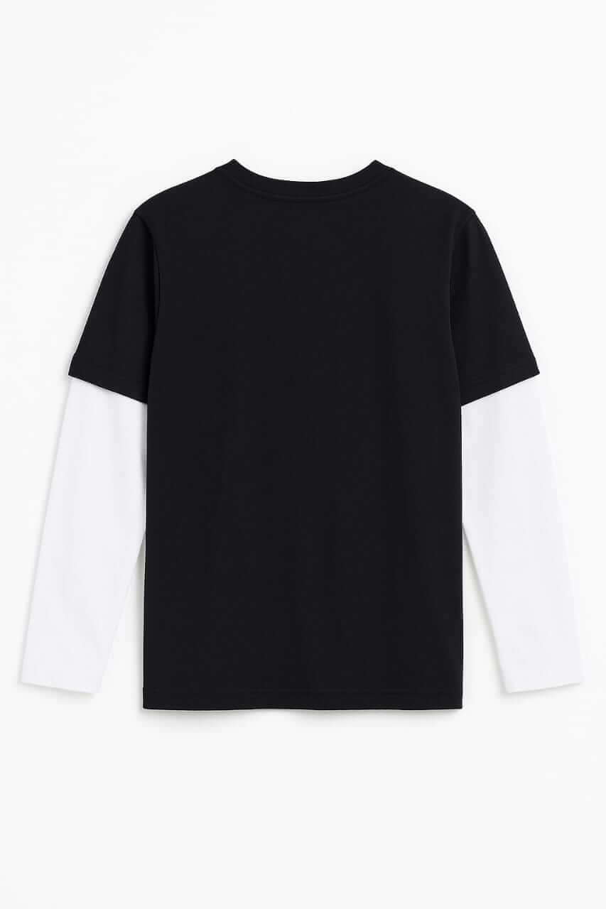 Enfin, un modèle noir avec manches blanches superposées, qui apporte une touche urbaine très moderne.
