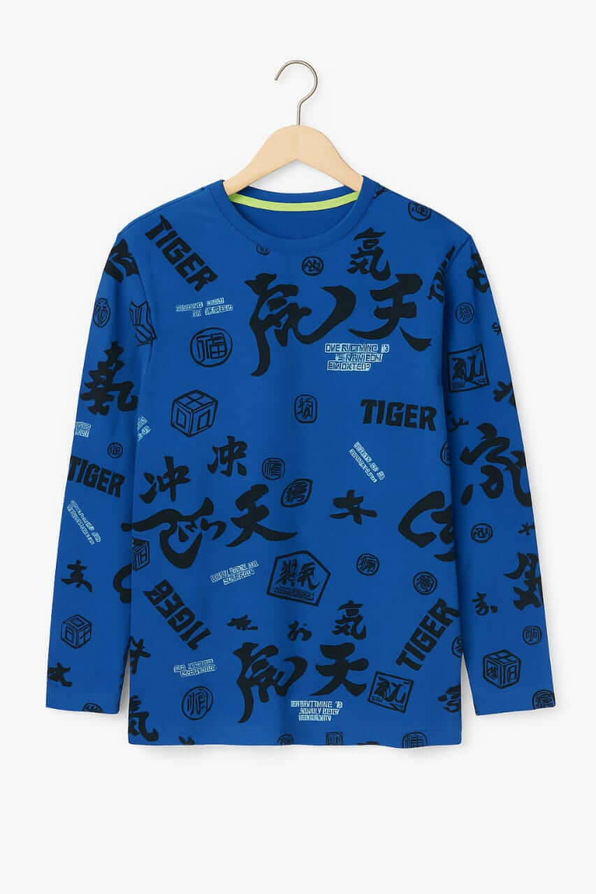 Une version bleue ornée de motifs graphiques inspirés de la calligraphie asiatique, parfaite pour un style audacieux.