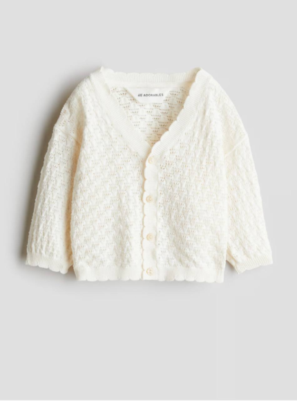 Cardigan fille en maille ajourée blanche – Adorable
